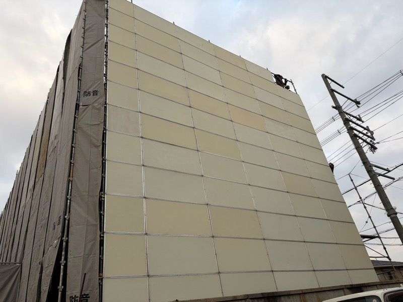 高層階におよぶ作業や公道に面した現場において、通行人の方々や近隣住民の皆様の安全を最優先に考えた仮囲いを設置いたしました。